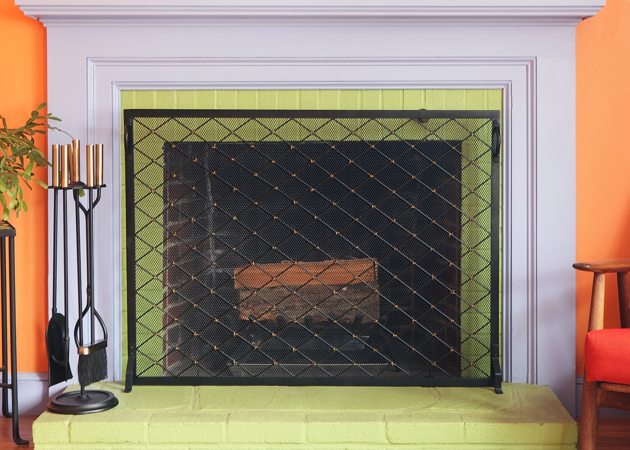 The diamond pattern of the Harlequin Flat Screen is delicately accented with wrapped brass wire crosspieces for a touch of contrast against the black wrought iron frame and mesh. Flat screens fit close to the fireplace surround, for a sleek, contemporary look. A beautiful Minuteman International flat fireplace screen provides a decorative accent for the room and protection from flying sparks. With minimal bulk, and available in three sizes, these screens are perfect for any shallow hearth. Complement this screen with our Neoclassic Tool Set in Black with Antique Brass handles.