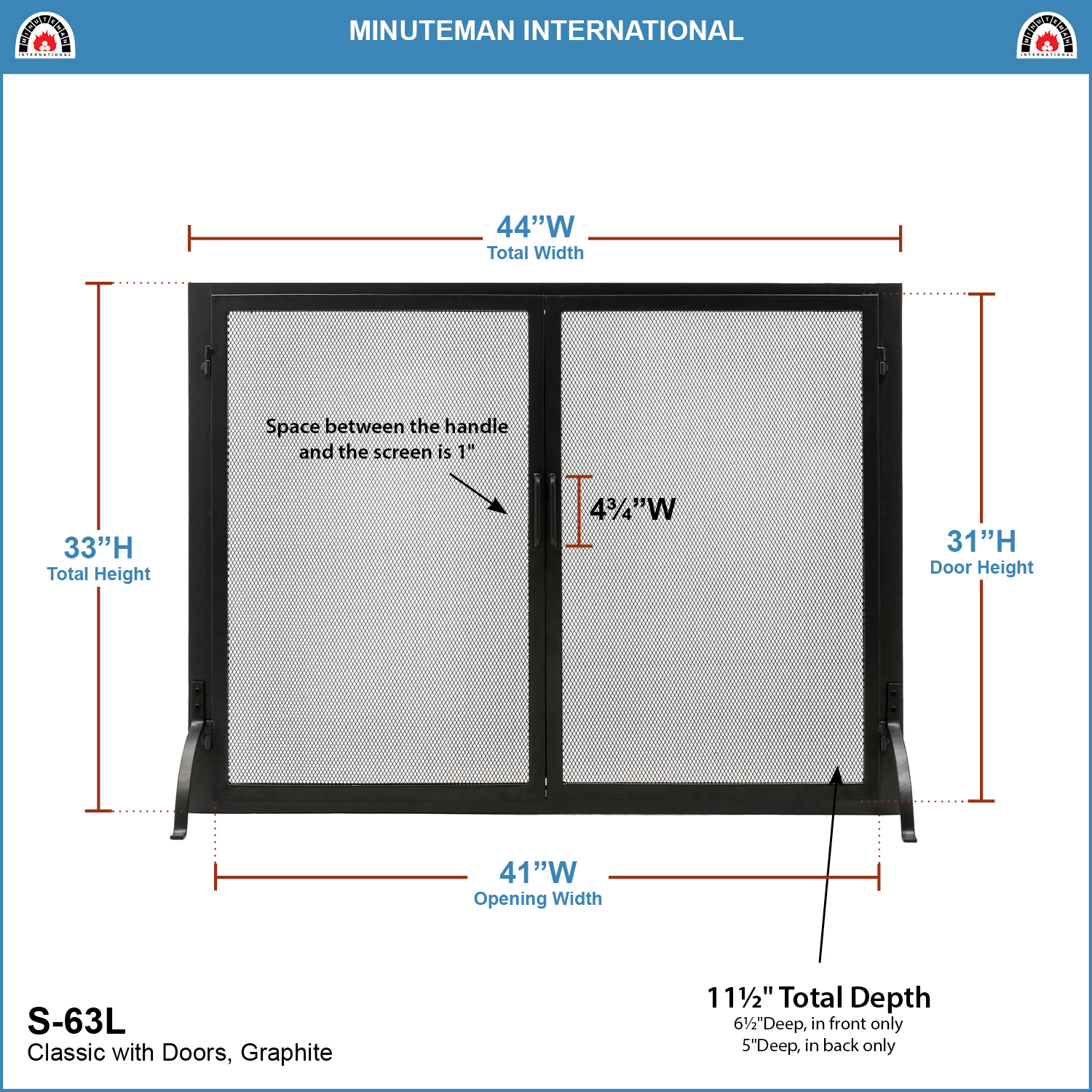 The simple design of the Classic Flat Fireplace Screen with Doors is both clean and practical, allowing the fire to be tended without the need to move aside the screen. Flat screens fit close to the fireplace surround and provide a decorative accent and safety from flying sparks while minimizing bulk, making them ideal for a shallower hearth. Available in two sizes to fit most fireplaces. Complement this screen with any of our Minuteman International fireplace Tool Sets, Log Holders and wool Hearth Rugs.