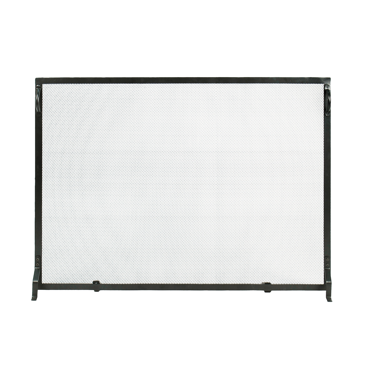 Plain and uncluttered, this minimalist Plain By Design Flat Fireplace Screen complements any style interior and comes in three sizes to fit most fireplaces. Low profile free-standing flat screens are ideal for a shallow hearth, providing spark protection with minimal bulk. Handles are provided at the top for moving the screen aside when tending the fire. Adjustable feet allow the screen to be leveled on an uneven hearth. The wrought iron frame and expanded rolled mesh are powder coated in a matte Black finish. Create a traditional fireplace look with one of our simple contemporary Bedford Fireplace Tool Sets (WR-48BK) or Mission Wood Holder Tool Set combination (LCR-08), and any other Minuteman International hearth and fireplace accessories.