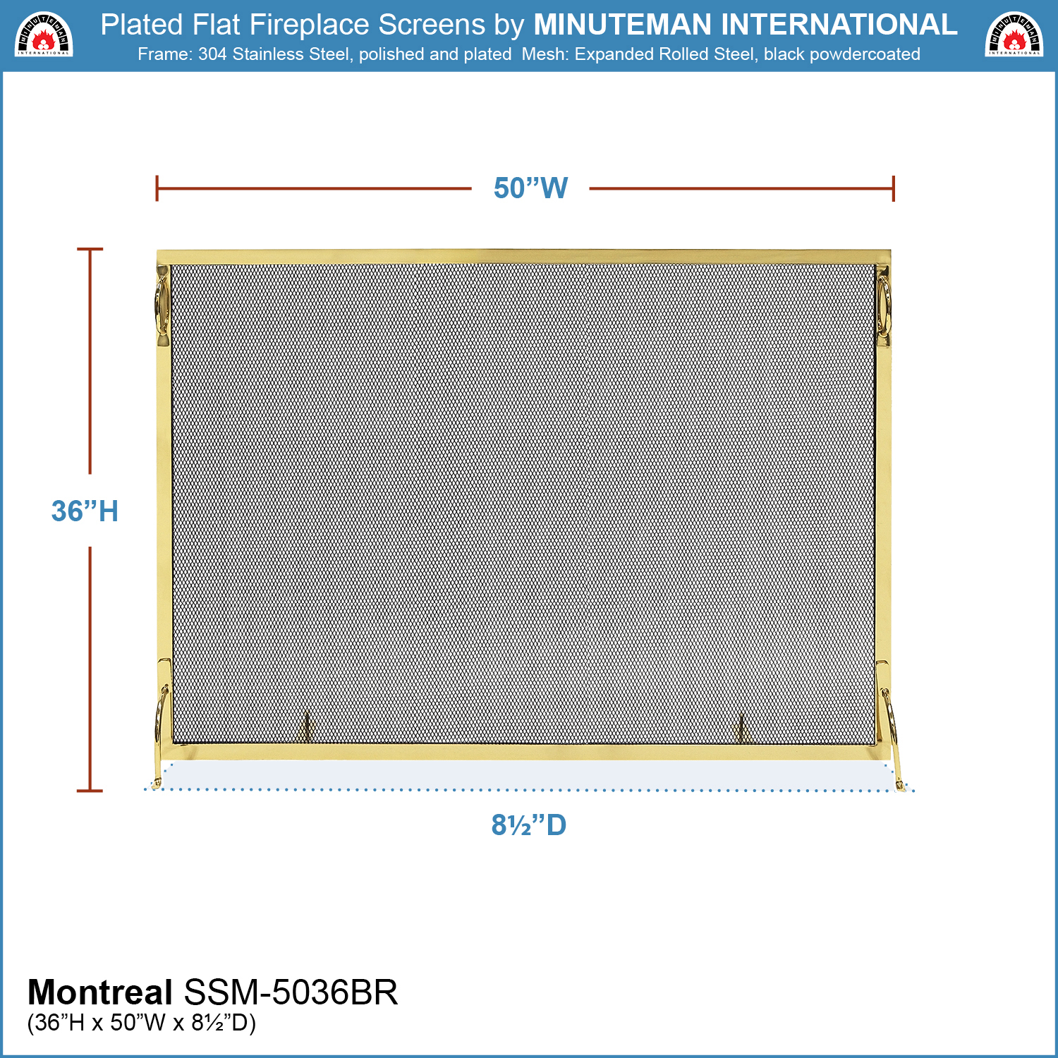 - QUALITY MATERIALS- Montreal Screen frames are made from 304 Stainless Steel with Polished Brass, Nickel and Copper plated finishes. The expanded rolled steel mesh has a black powder coating that is superior to paint. Screens are shipped flat with easily attached handles and feet packed separately.