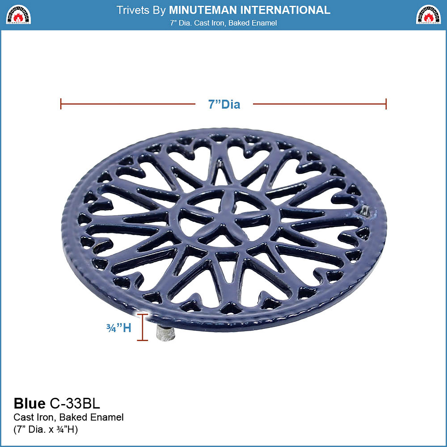 Minuteman International makes a wide array of accessories for wood and pellet stoves. Our colorful line of enameled Sunburst Trivets are handy at the stove top, cook top or table top. Place under kettles, steamers or cooking pots to protect wood stoves from scratches and diffuse heat. Use beneath hot pans or dishes for serving, even under plants to protect the floor.