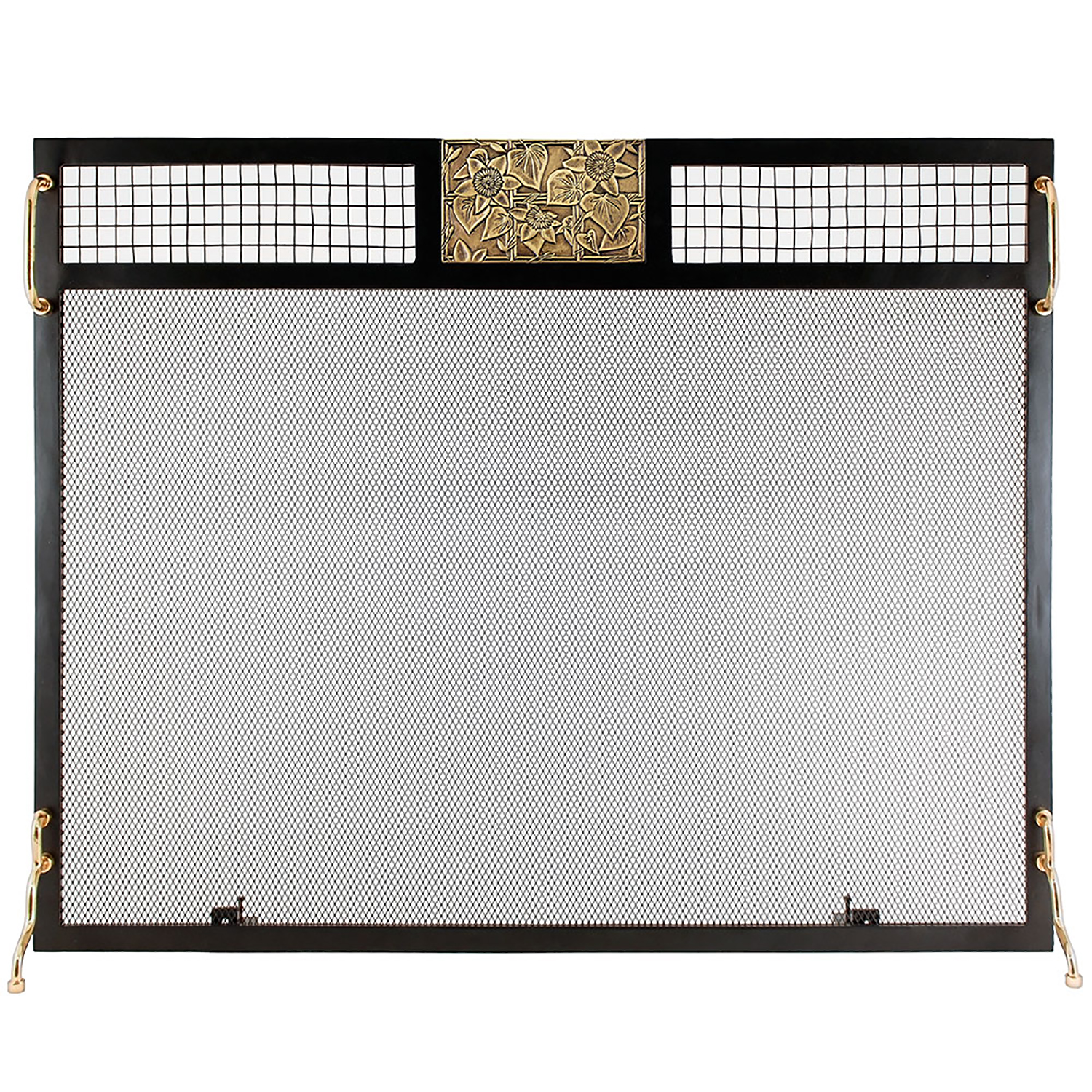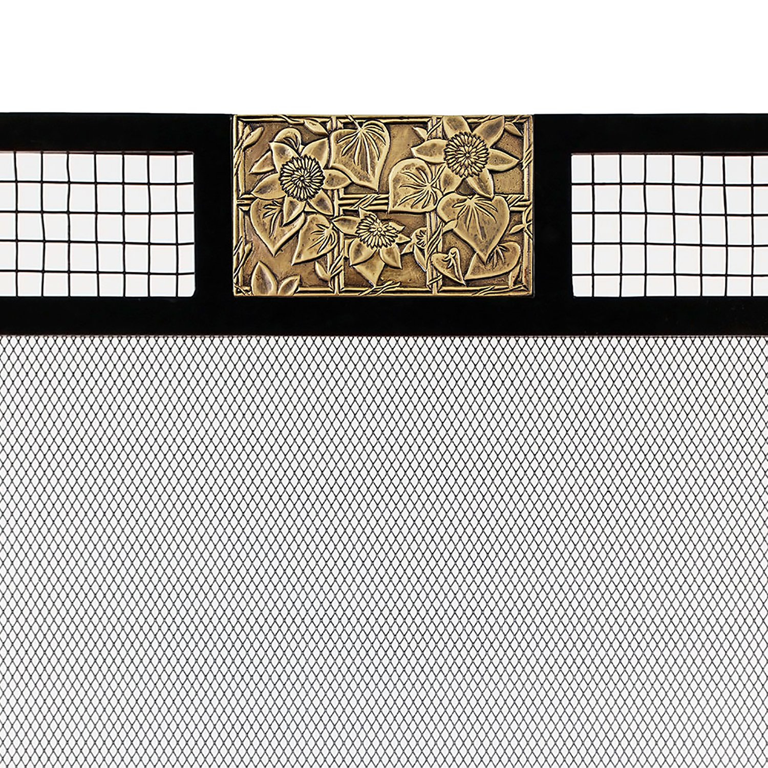 - A finely detailed Clematis and Windowpane design cast in solid brass forms the accent Emblem on this free-standing flat fireplace screen