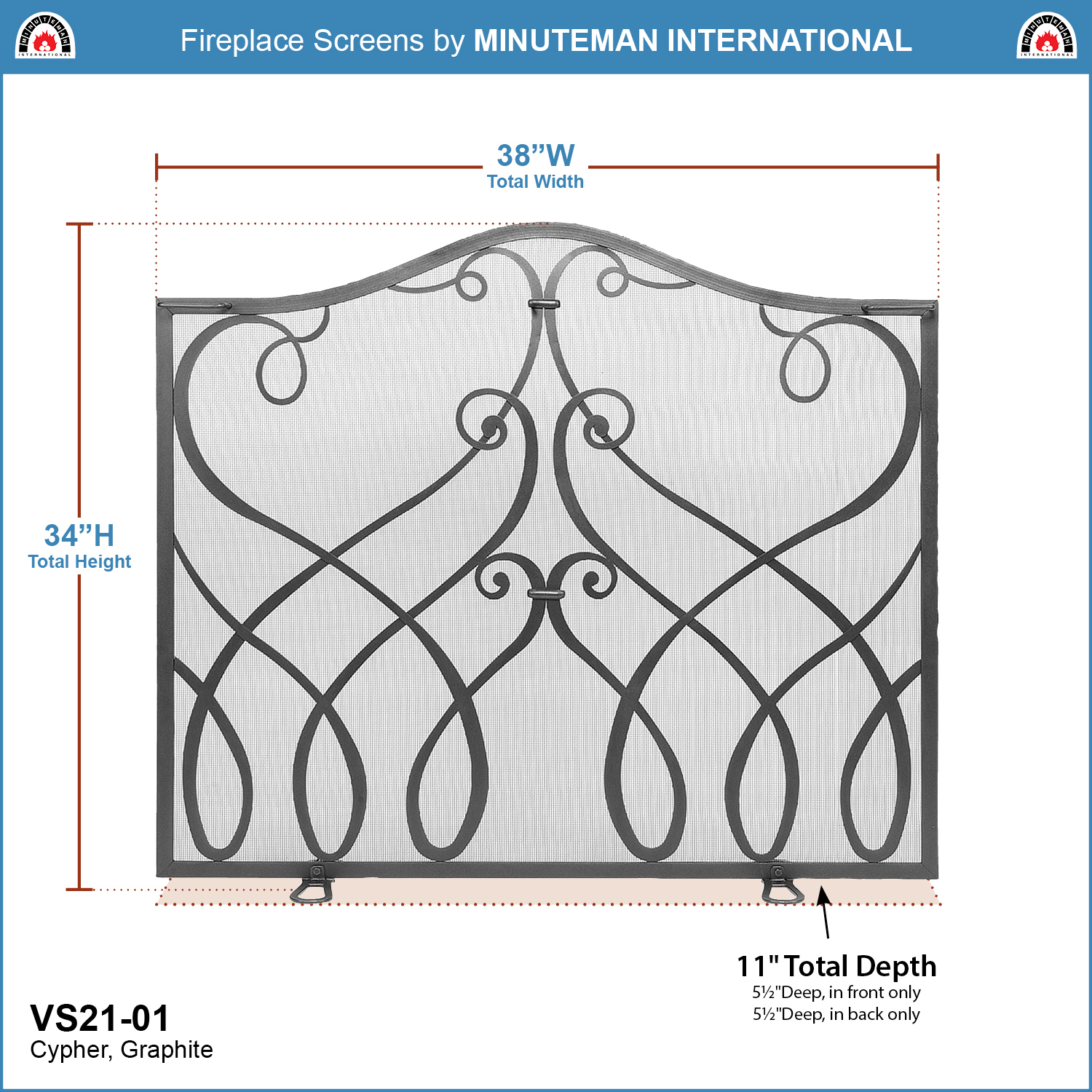 The casually elegant design of the Cypher Fireplace Screen by Minuteman International is inspired by early American decorative pieces in the collection of Colonial Williamsburg, that were made in the tradition of personalizing objects with elaborate monograms. This practice of weaving letters into designs reached a high level of refinement in the 18th century. The pleasing flow of lines required to create these cyphers brings great style to the hearth today. This flat fireplace screen is a beautiful accent piece that is perfect for a shallow hearth. Free-standing flat screens sit close to the fireplace opening, offering spark protection with little bulk. Available in a Graphite powder coating, for a natural iron look, or warm Roman Bronze. Pair it with our Cypher Fatwood Caddy (VFWC21-01) and any other of our decorative log holders and tool sets, to complete your hearth decor.