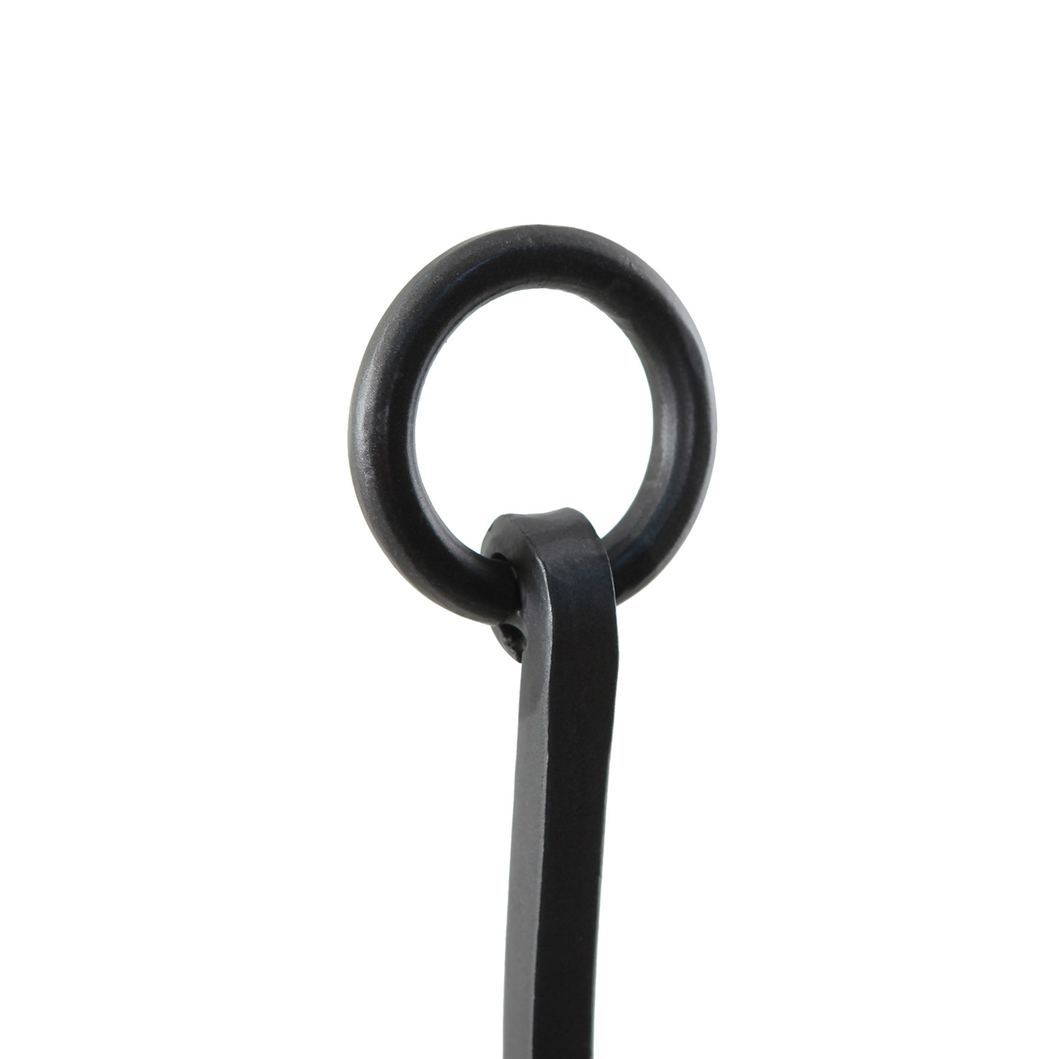 - Attractive and functional, hand-forged wrought European-style set, with a traditionally made handle that wraps over the hanging ring