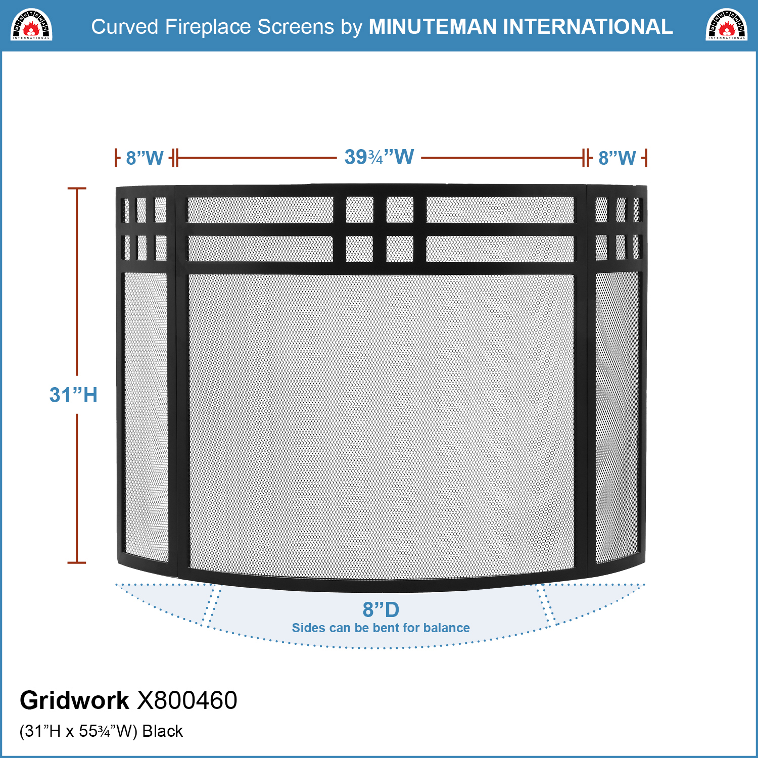 The Gridwork Curved Fireplace Screen with a classic window-pane pattern consists of three gently curved panels. It can be used as a curved screen or as a traditional 3-part folding screen, with each side placed at an angle. Surround your fireplace with a pleasing curve while eliminating the visual clutter of handles and feet. This style, well-suited for a Craftsman or Mission style home, can be paired with one of our Minuteman International wrought iron Tool Sets to complete the hand-crafted hearth set.
