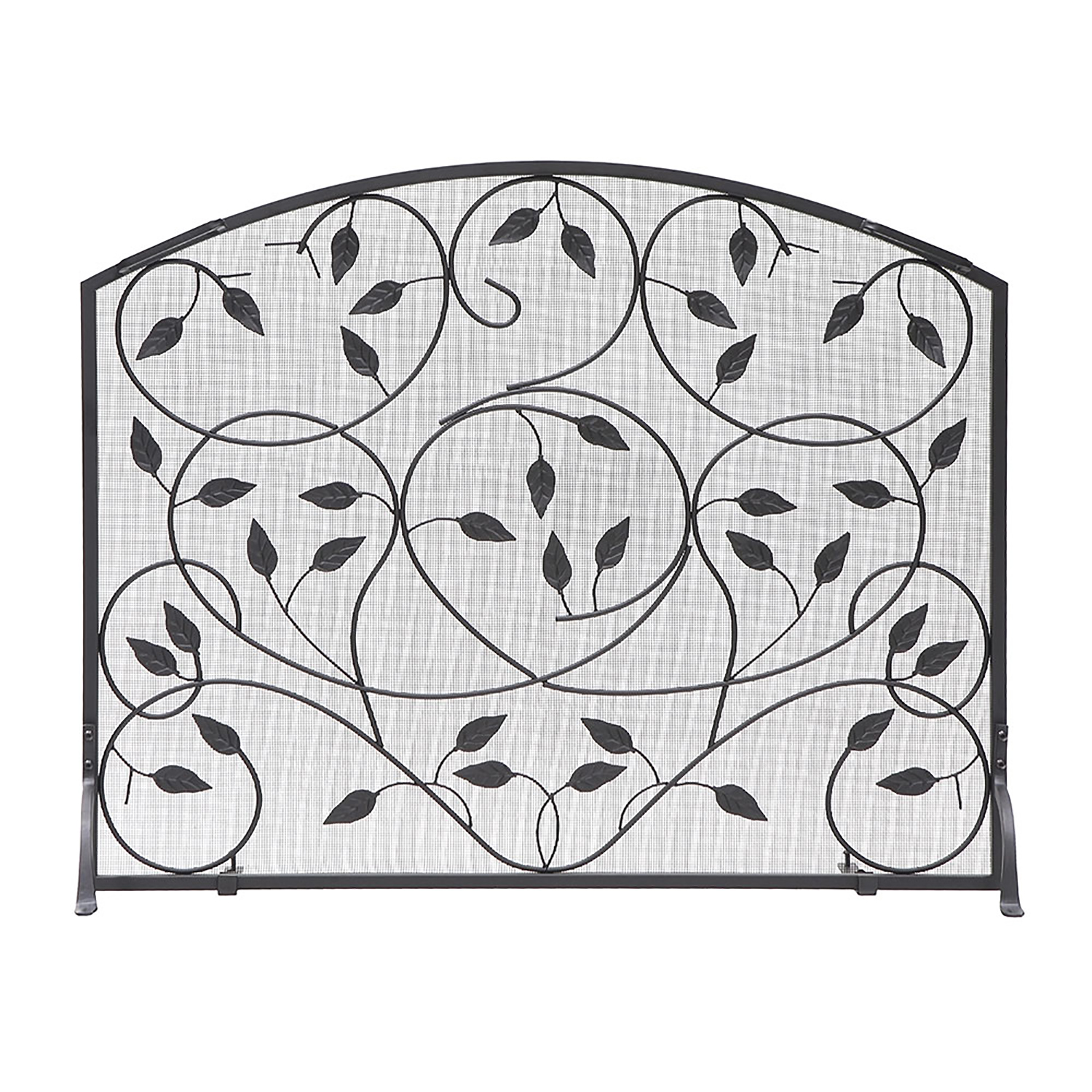 Leafy tendrils bring a natural element of the autumnal season to your hearth winding their way over the mesh of the screen, allowing the firelight to dance around their silhouettes. Free-standing flat fireplace screens are ideal for bringing a decorative accent to your room and work well with a shallow hearth. Integrated handles at the top of the screen allow the screen to be moved aside easily for tending the fire. Finished with a matte Black powder coating, pair this screen with one of our Minuteman International wrought iron Tool Sets.