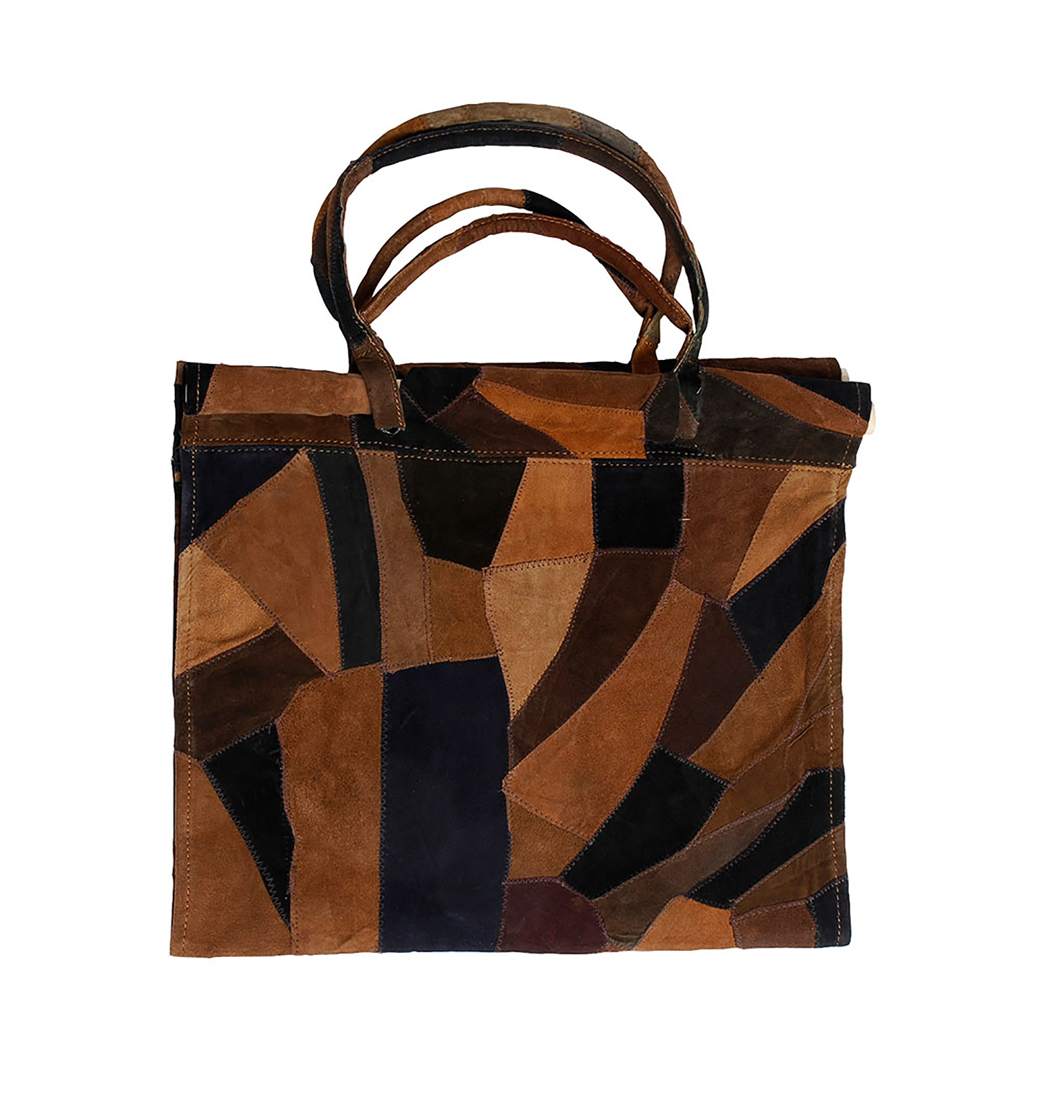 - Made of Dark Brown, Russet and Camel tone patchwork suede leather