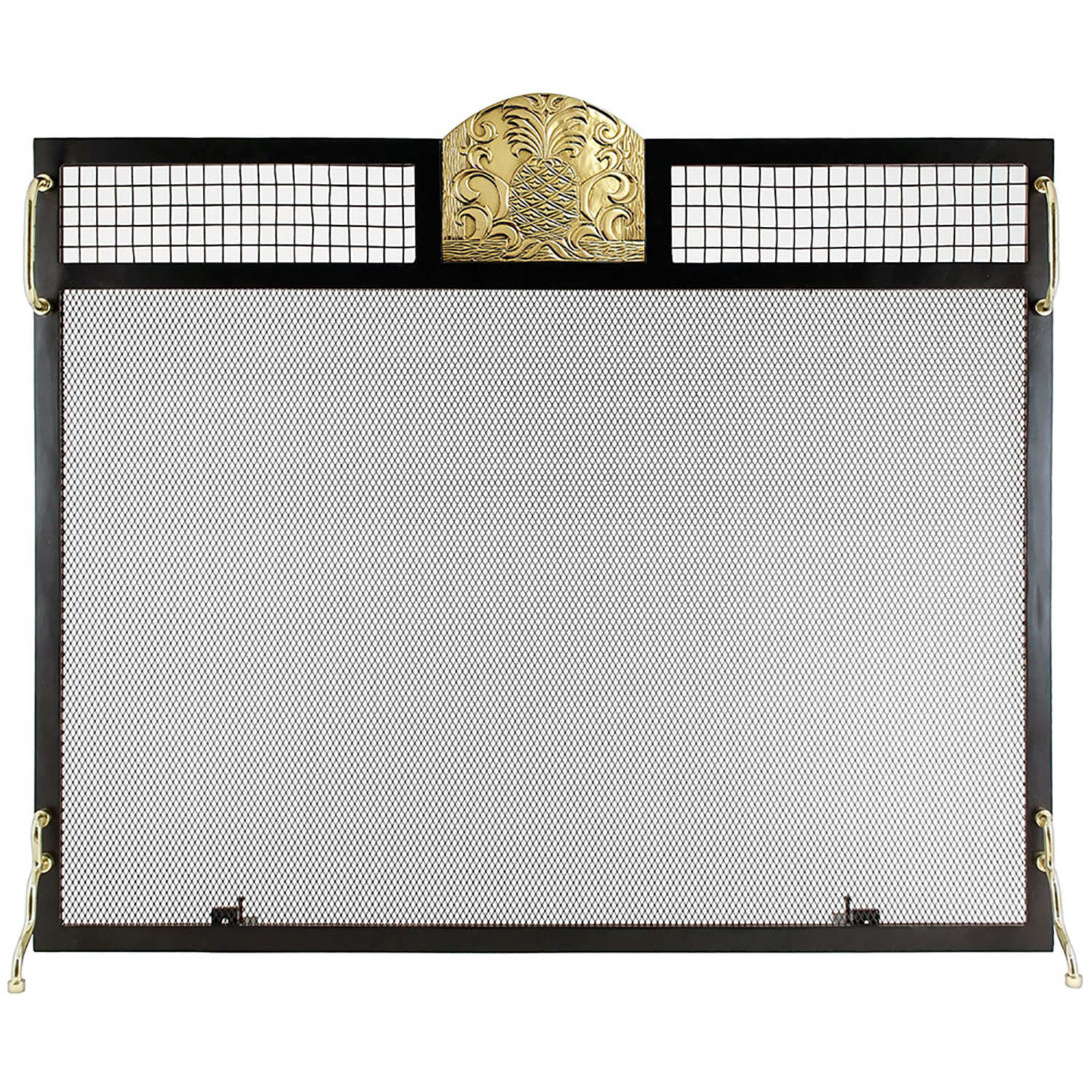 • A welcoming Pineapple design cast in solid brass forms the arched accent Emblem on this free-standing flat fireplace screen