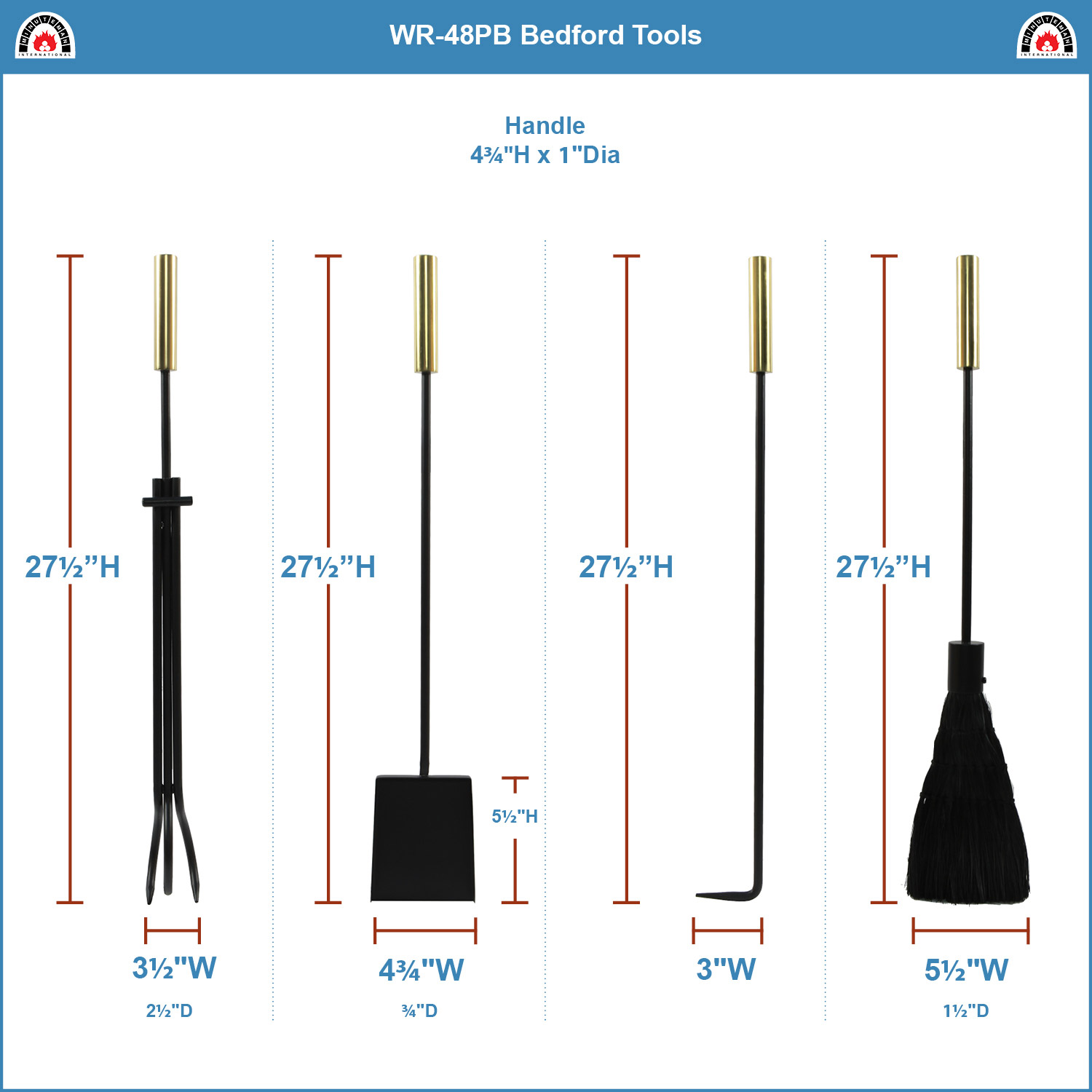 - THREE FINISH OPTIONS- Bedford Tool Set is available in all Black, or with Polished Brass or Polished Chrome handles, to complement a stylish modern fireplace and home décor. The handles are electroplated for long-lasting finish with a Black powder coating that is superior to paint.