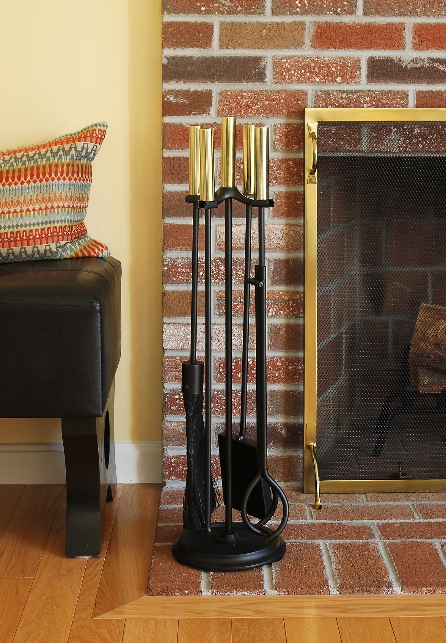 - FOUR TOOLS and STAND- Features a fireplace Poker, Shovel, Brush and T1-style Tong, with three-point capture for secure and safe fire-tending.