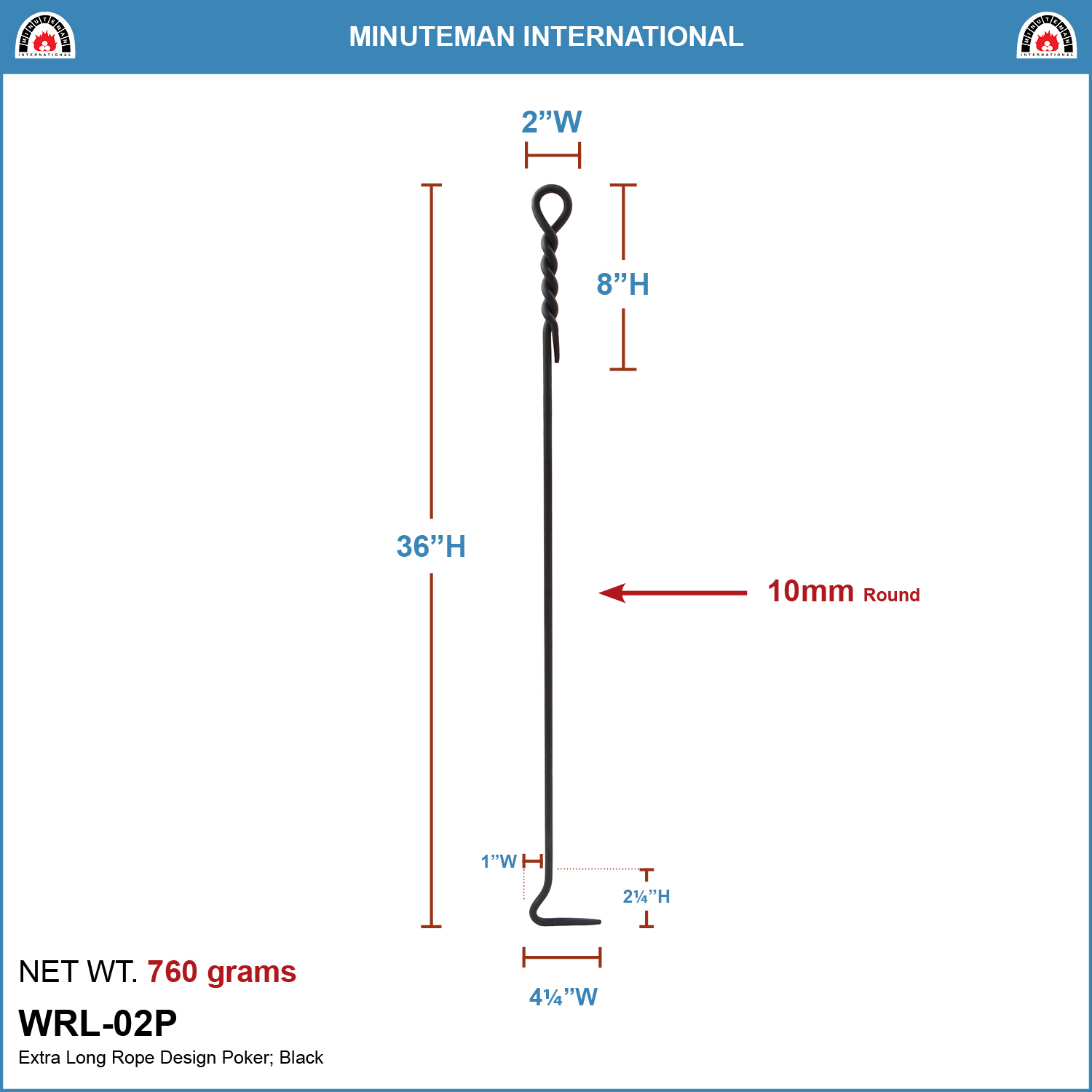 Traditionally made wrought iron tools have stood the test of time because they are both attractive and functional. Minuteman International makes a full line of wrought iron tool sets for all your hearth-tending needs. Our classic wrought iron twisted-handled Rope Design tools are also available individually in three lengths. Choose compact Mini Tools for woodstoves, Standard, or Extra Long for fireplaces and fire pits. Tools include pokers, shovels, tongs, hoes and brushes. All tools are made from 3/8″ round solid stock and finished in Black powder coating. All feature a looped end for convenient hanging from any of our matching wrought iron tool hooks and wall brackets.