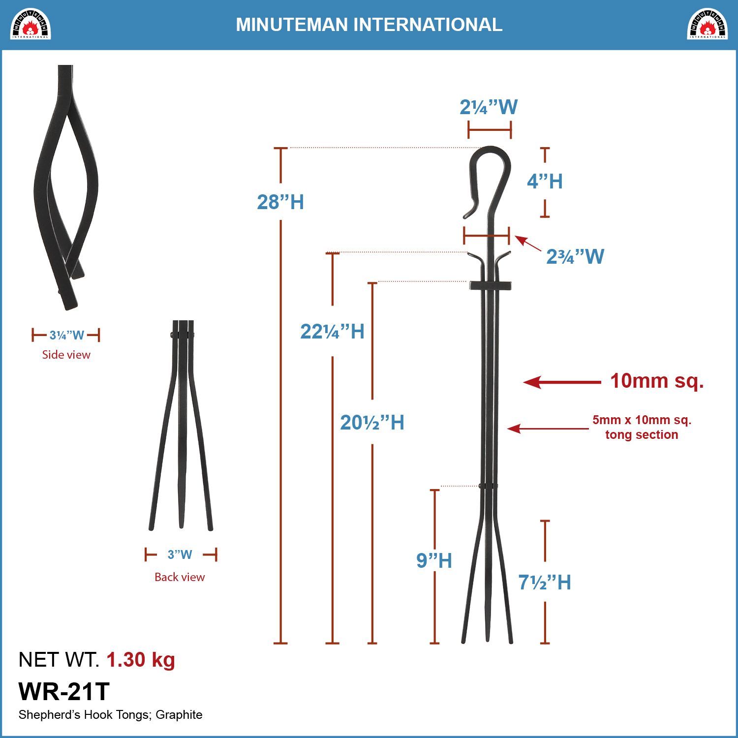Traditionally made wrought iron tools have stood the test of time because they are both attractive and functional. Minuteman International makes a full line of wrought iron tool sets for all your hearth-tending needs. Our classic wrought iron Shepherd’s Hook Design tools are sold in many set options and also individually. Tools include Poker, Shovel, Tongs, Hoe and natural sorghum fiber Brush, all with the traditionally gracefully curving Shepherd’s hook handle. All feature an open end for convenient hanging from any of our matching wrought iron tool hooks and wall brackets. All tools are made from 3/8″ solid stock and finished in Graphite powder coating for a durable finish that retains the look of natural iron. All feature an open end for convenient hanging from any of our matching wrought iron tool hooks and wall brackets.