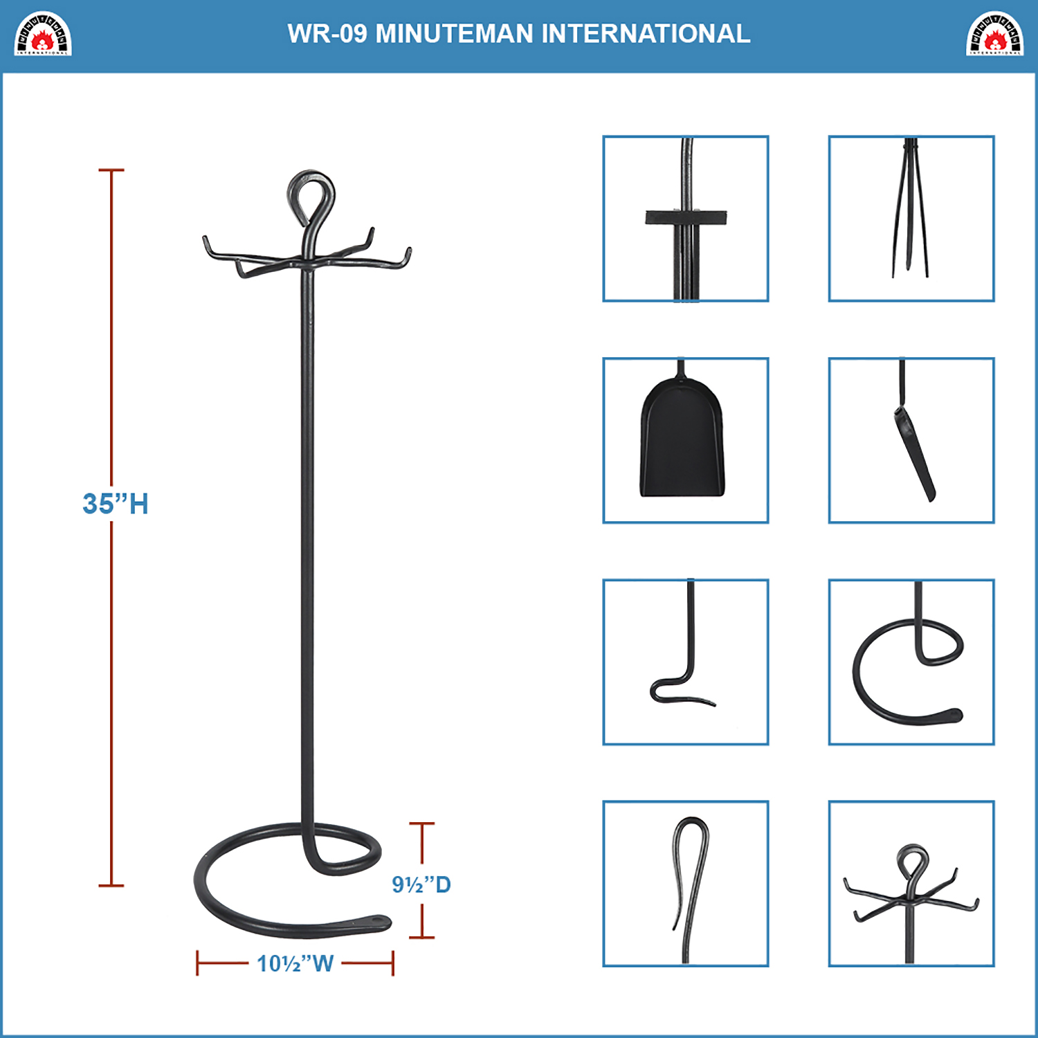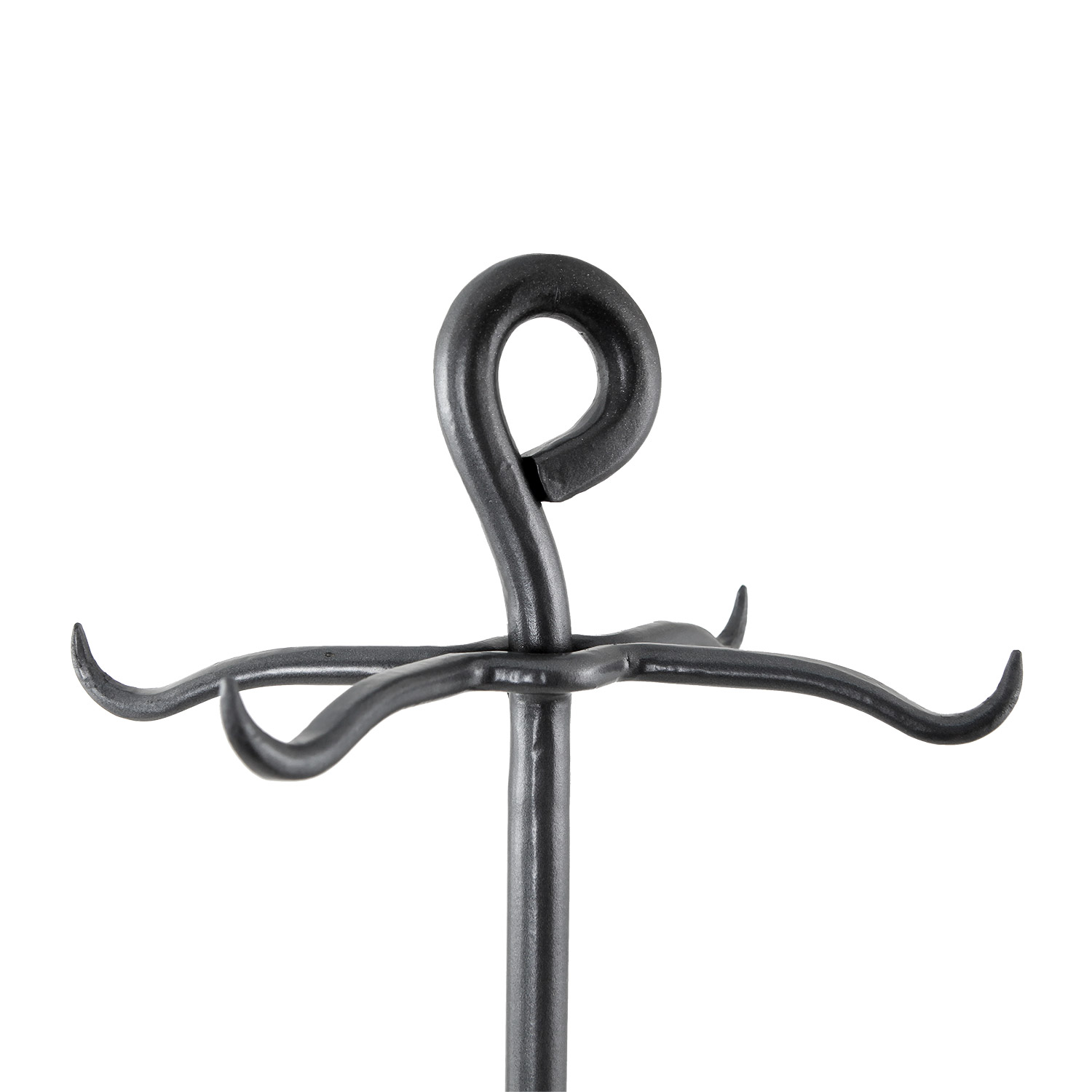 The sweeping curved base of The Shepard’s Hooks Tool Set adds an Art Nouveau touch to this traditionally crafted set. Featuring a traditional shepherd’s hook on each tool handle as well as the top of the stand, the set can easily be moved with tools hanging. The stand employs a large loop as the base, and comes with four tools- poker, tongs, shovel and brush. Made of wrought iron and