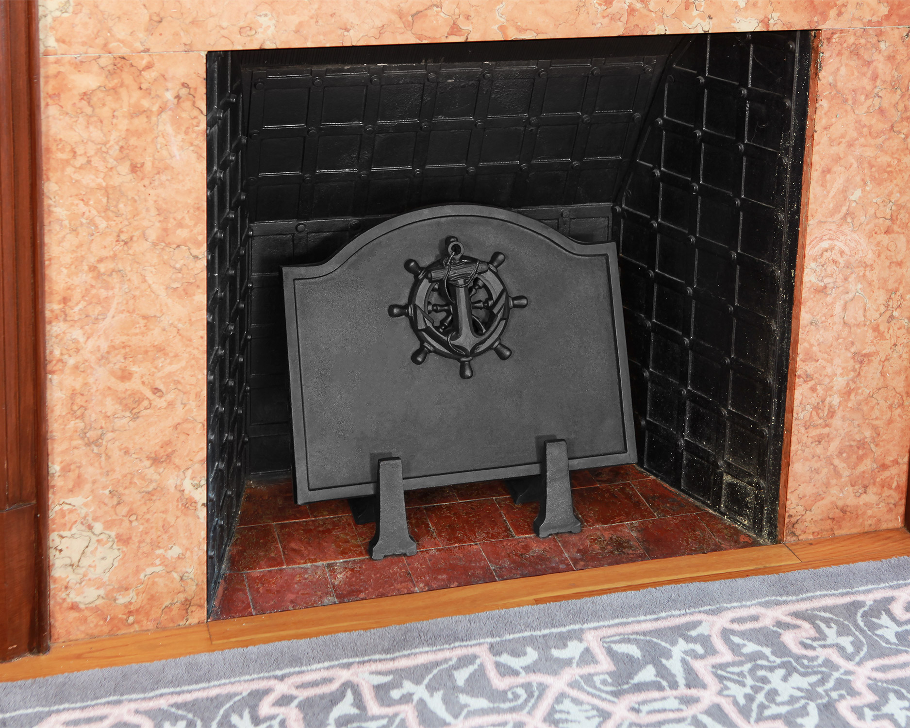 - Nautical Fireback features a ship’s anchor and wheel, sculpted in fine detail and cast in iron