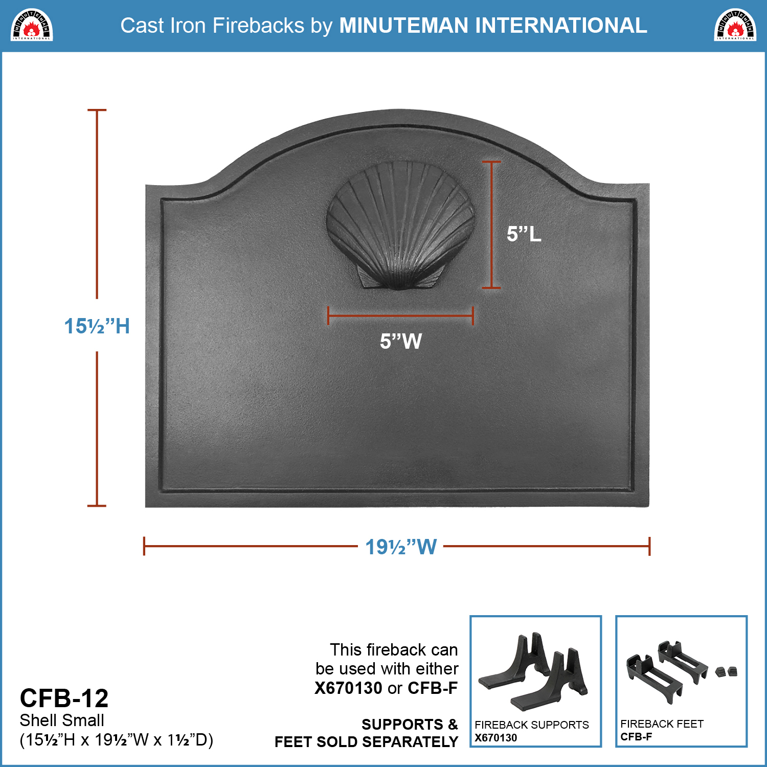 - Options: The Shell Firebacks may be used directly on the hearth floor, or with feet if additional height is desired. Use Minuteman International Fireback Supports (X670130) or Fireback Feet (CFB-F) We have Firebacks in many size and style options, to fit fireplace openings in both new construction and older homes.