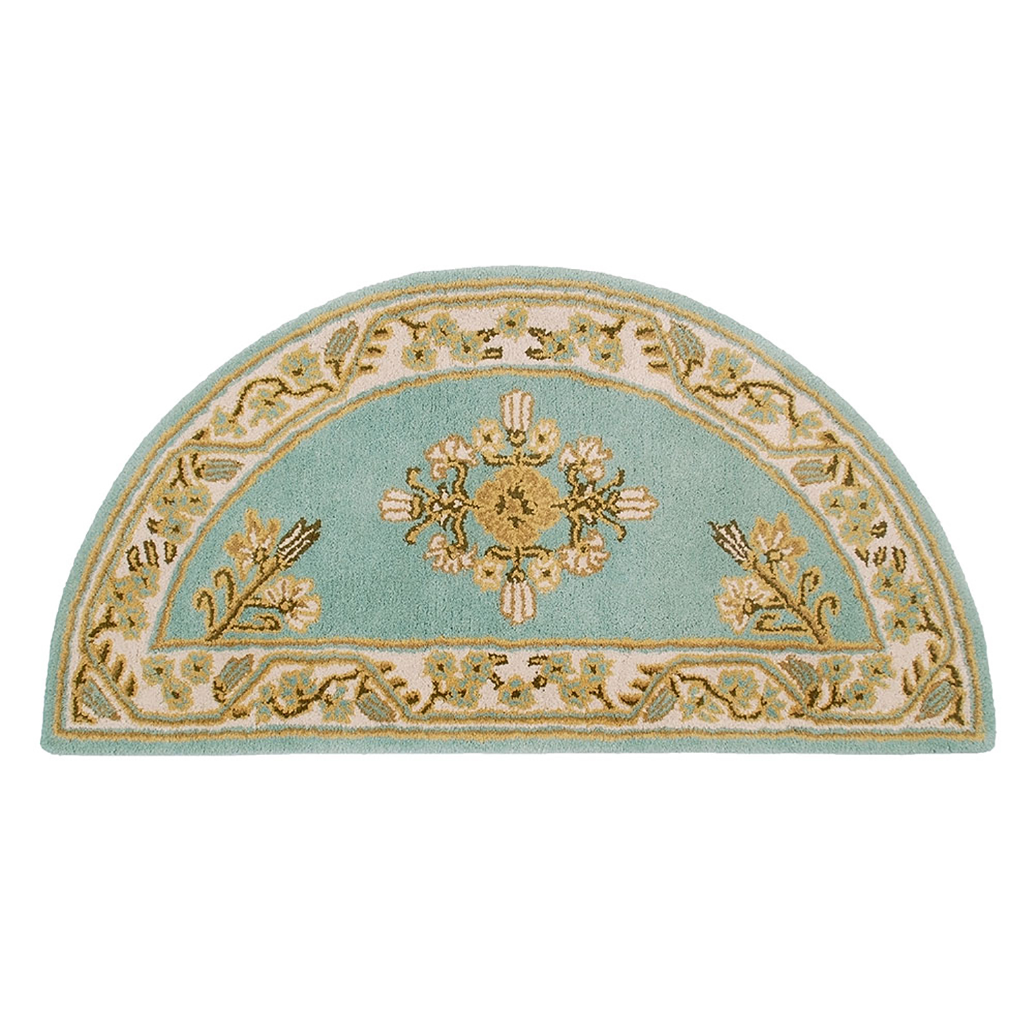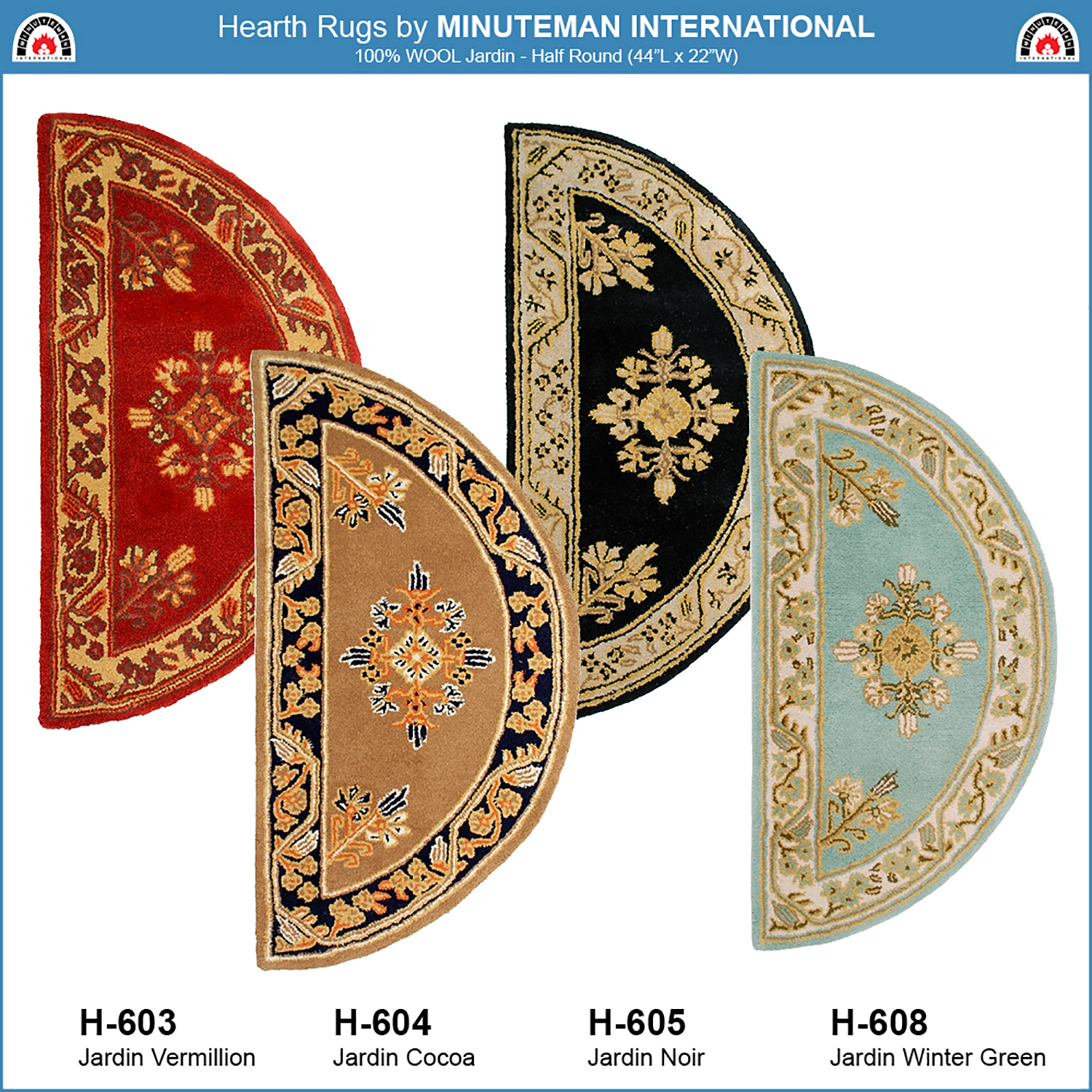 Achla created this Jardin or garden design, inspired by traditional Turkish rugs. Jardin rugs feature medallions of tulips and carnations, and borders of stylized carnations. They are available in rich Vermilion, Cocoa, and Noir, an elegant combination of black and beige. Hearth rugs protect your floor and will add beauty and warmth to your fireplace. They can also be used as door mats or as occasional rugs throughout your house. (For indoor use only).All our hearth rugs are woven from the highest quality 100-Percent virgin wool and dyed in rich saturated colors. They are fire resistant and meet federal requirements for surface flammability of small carpets (Part 1631 – FF2-70). Warning: your pets will probably make a bee-line for these rugs so they can bask in the warmth of the fire!